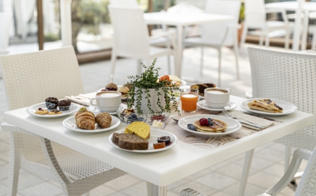 La nostra colazione dolce e salata può essere assaporata tutte le mattine, dalle ore 7.30 alle 10.30 all’interno dell'Hotel, in un ambiente luminoso e accogliente, oppure all’aperto sulla nostra terrazza lato mare, per chi desidera farsi accarezzare dai primi raggi di sole e da una leggera brezza marina, ammirando l'animata passeggiata di Rimini, per un risveglio diverso un Buongiorno che arriva direttamente dal MARE!